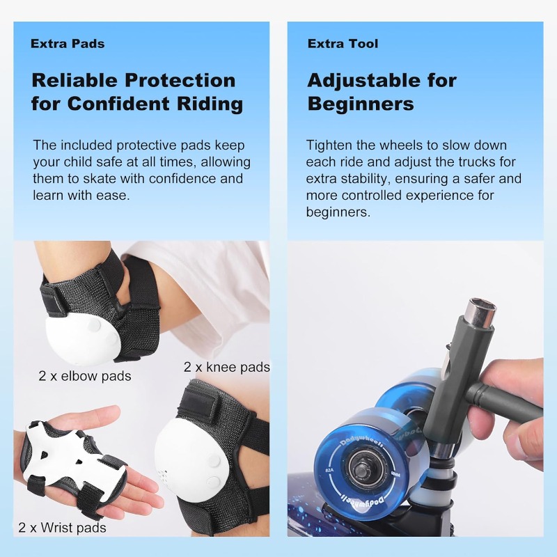 Complete Skateboard Set with LightUp Glow-in-the-Dark Wheels - Heavy-Duty 7-Ply Maple Deck, 220 lbs Weight Capacity, Full Protective Gear (Helmet\u002FWrist\u002FElbow\u002FKnee Pads) & Tool Kit for Boys & Girls - Beginner to Pro Skateboard Kit with